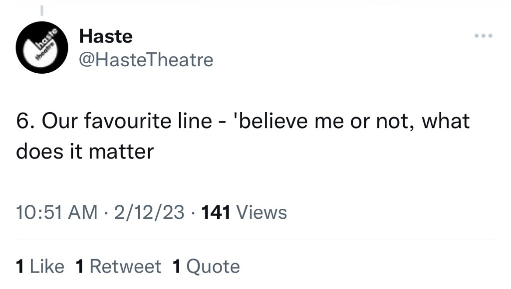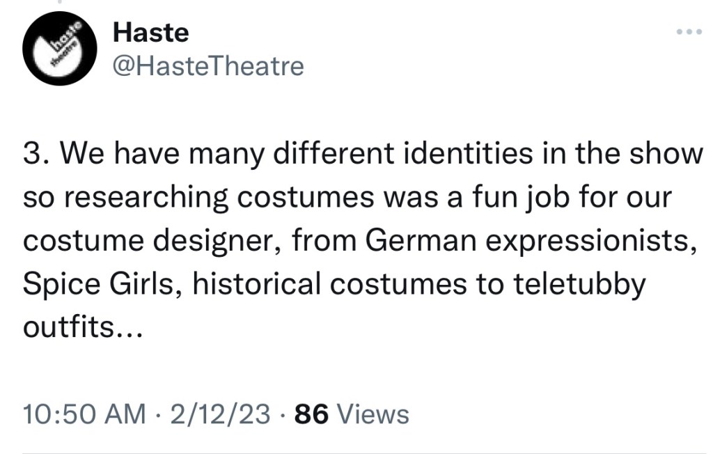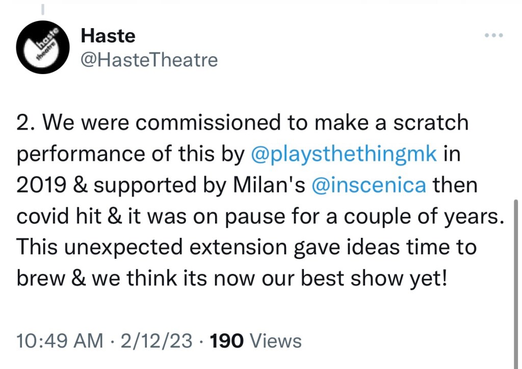 Stand by to hear how the chaps at Haste Theatre replied