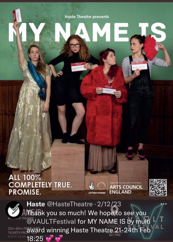 Join our Theatre Twitter After Party as we join Haste Theatre who gave us insights into their show at Vaults Festival opening soon